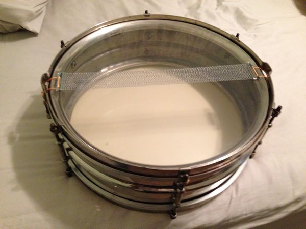 selling my 5"X15" Ludwig&Ludwig 1920's NOB 2 piece snare drum. this drum is a 6 tube lug drum, single flange hoops, all clips are original (one of the clips is starting to seperate at the flange), all tention rod and lug threads are clean and working nicely. asking $375. please PM me with any questions.