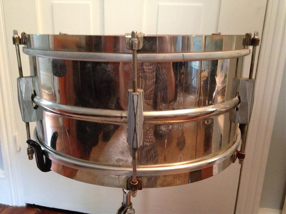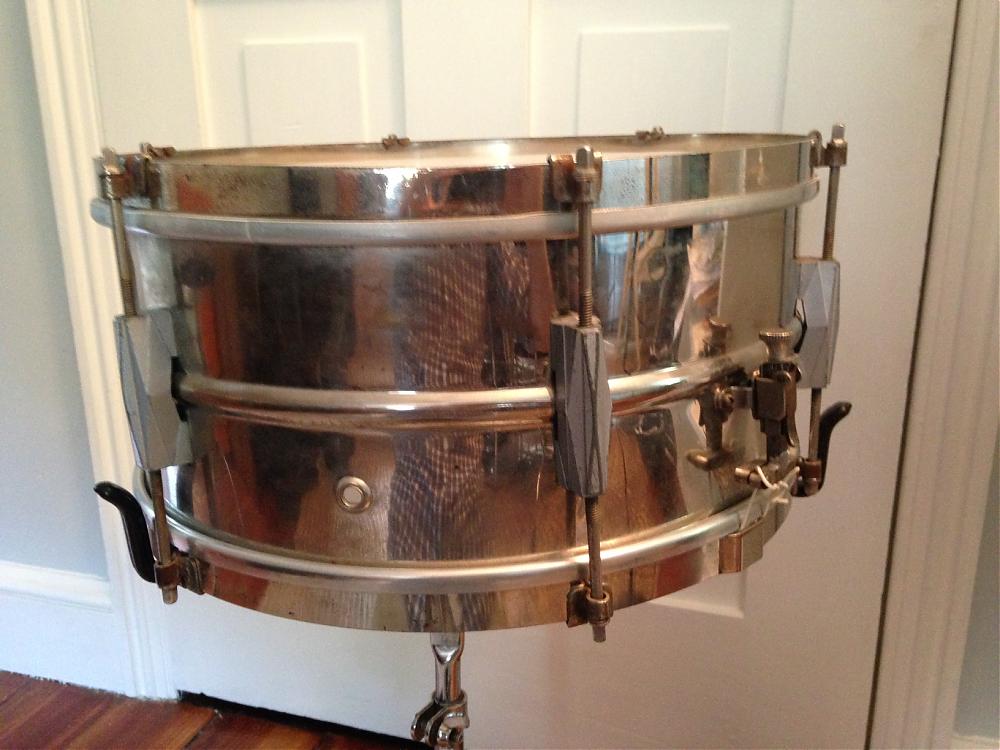 This is a really cool old drum. I think it might be 1920s because according to the Gretsch website they had started using the round badges by the 1930s and this doesn't have one. I assume this is brass due to how old it is. $300.
