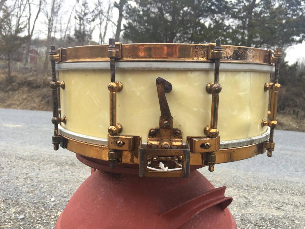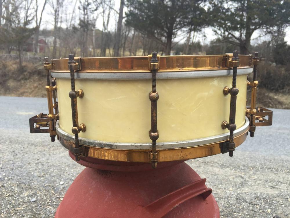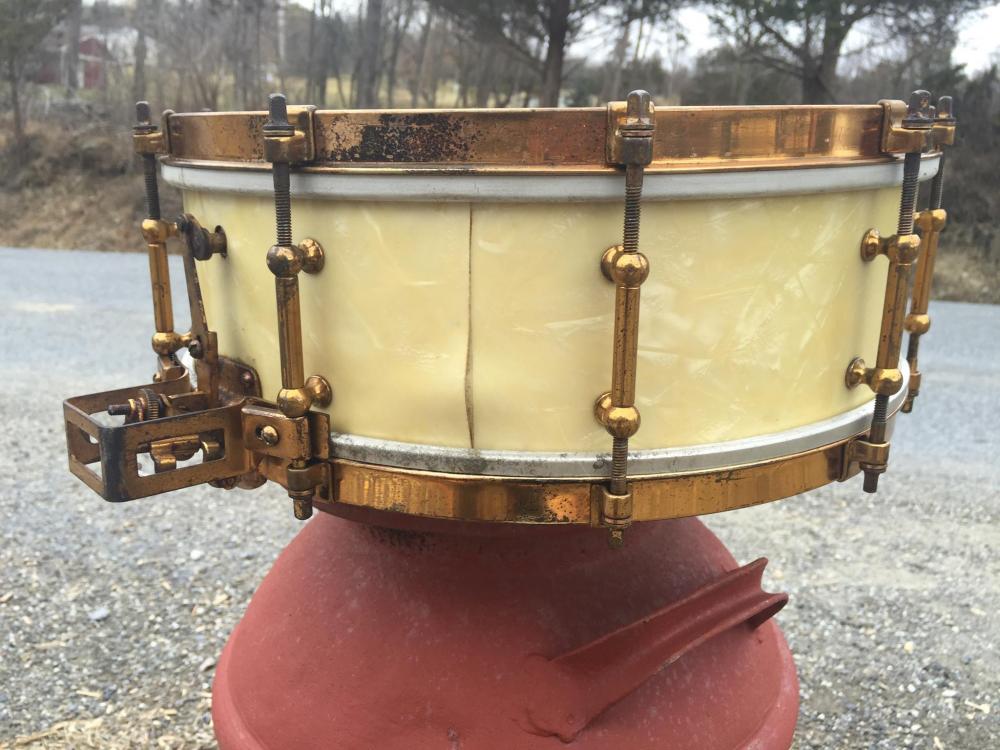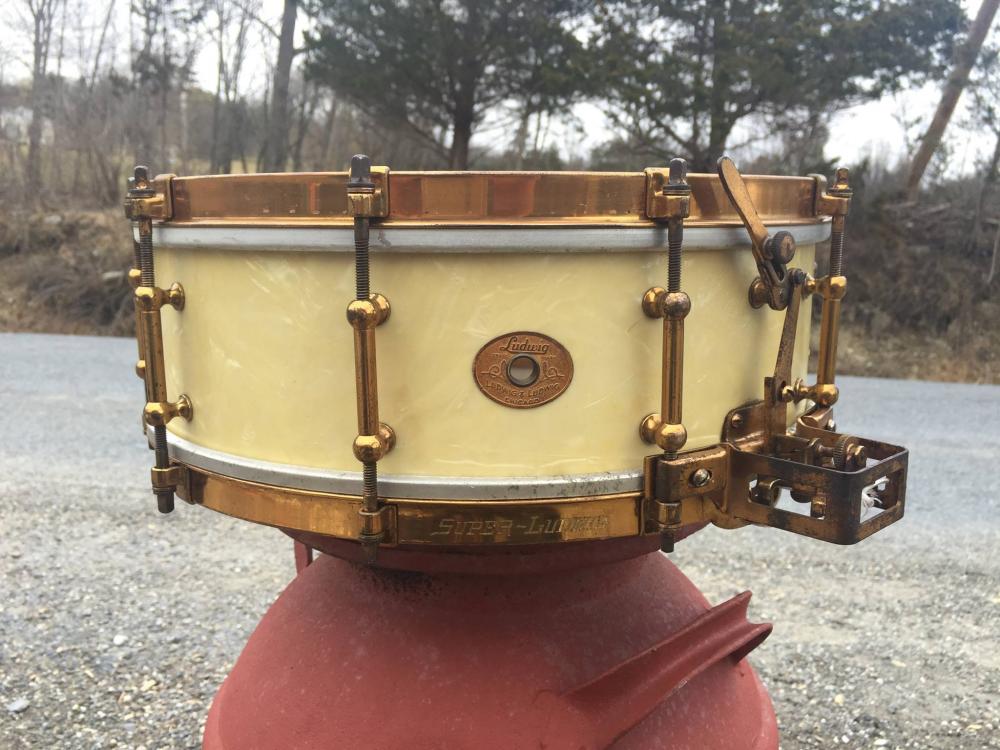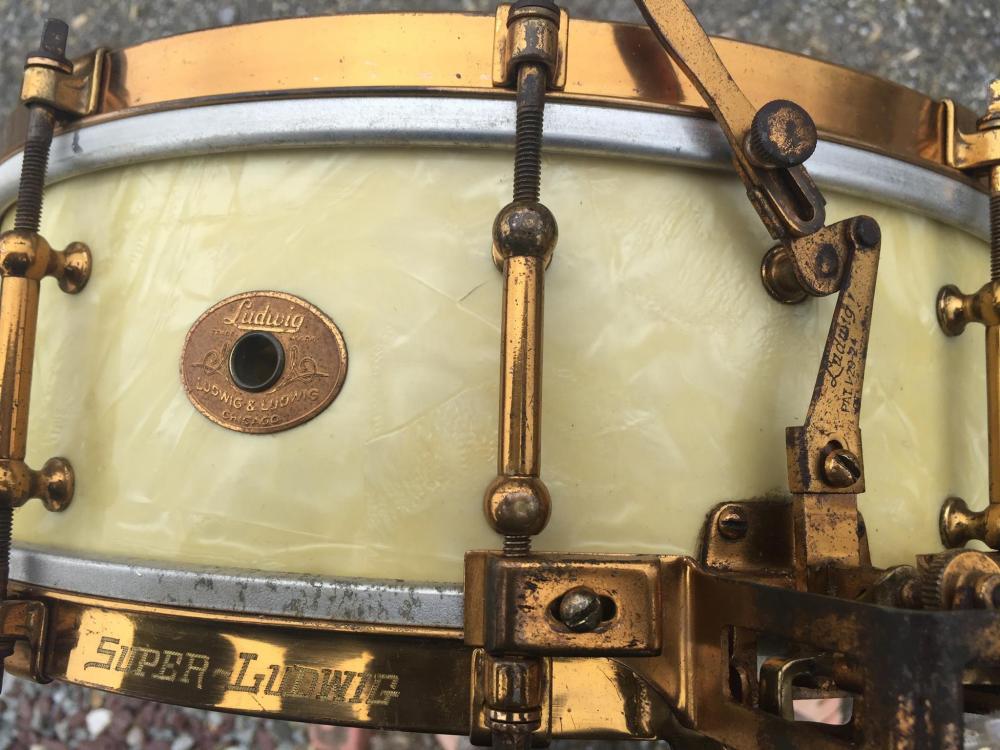 1920's Super Ludwig 5" x 14" supersensitive snare drum in White Marine Pearl a.k.a Avalon Pearl w/ Gold Hardware -