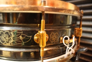 Not a ton of restoration on the drum Mike. I actually read a bunch of your posts to get an idea how to clean it up. I am going to be playing it in my studio so there was no need for a total re-store. Just a light polish on the shell and hoops. Then Cape Cod Cloth on the lugs, hoops and strainer parts plus a couple coats of the Nikolas Gold Laquer. Plus I had to futz a bit with the bad lug to even get it usable. One of the tabs inside that keep the tubes from spinning was bent out of place. So I had to heat it up a bit and move it back to center.