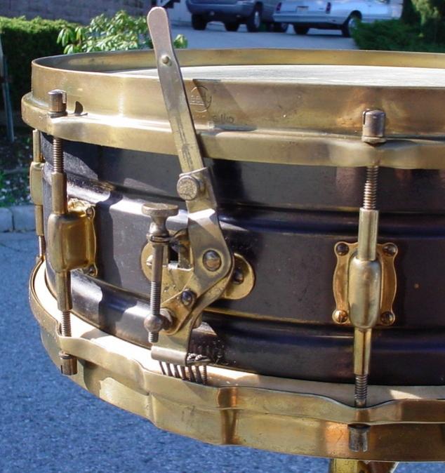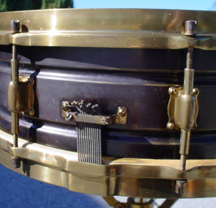 Here’s the latest snare drum to enter into the collection. This drum was willed to me by a good friend who had passed away a few years ago. My friend’s wife was ready to sell some of his snare drums and she told me that her husband had specified that I was to be contacted in order to help her sell the drums. The drum in this article was originally found in “as is” condition in an antique store many years ago by my friend’s mother. The drum is in 100 % original factory condition.