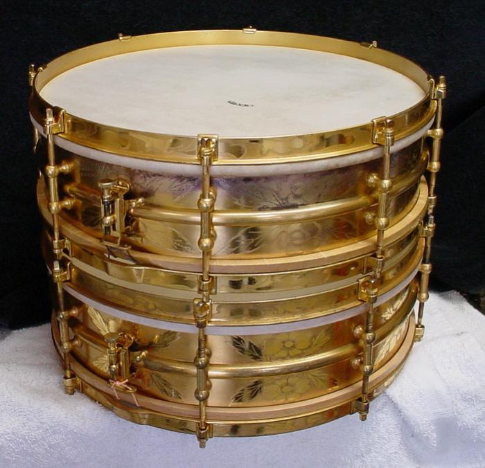 Ludwig & Ludwig gold plated/engraved Triumphal Models were the flagship of the Ludwig & Ludwig Drum Co. These snare drums are extremely rare and as John Aldridge stated: “...weren't production model drums.” At $115.00 these snare drums were not very affordable so it makes sense that to date only 9 of these have been located. Noted drum historian Harry Cangany once told me he thinks that: “less than a dozen were made...” There are only 5 owners of original Ludwig & Ludwig Triumphals: