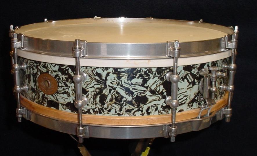 1928-29 LUDWIG & LUDWIG 5 x 14 MARBLE PEARL STANDARD MODEL