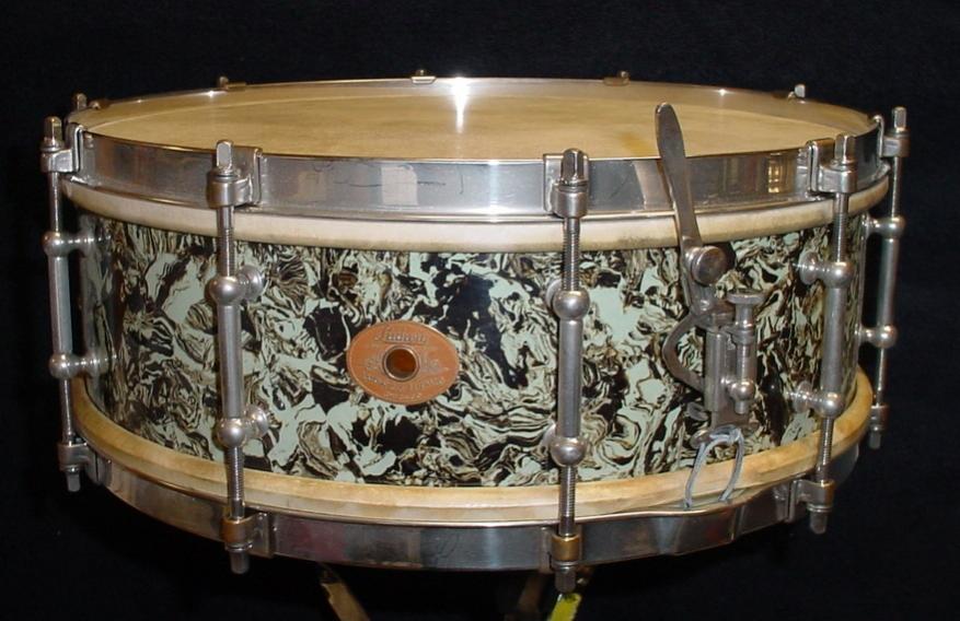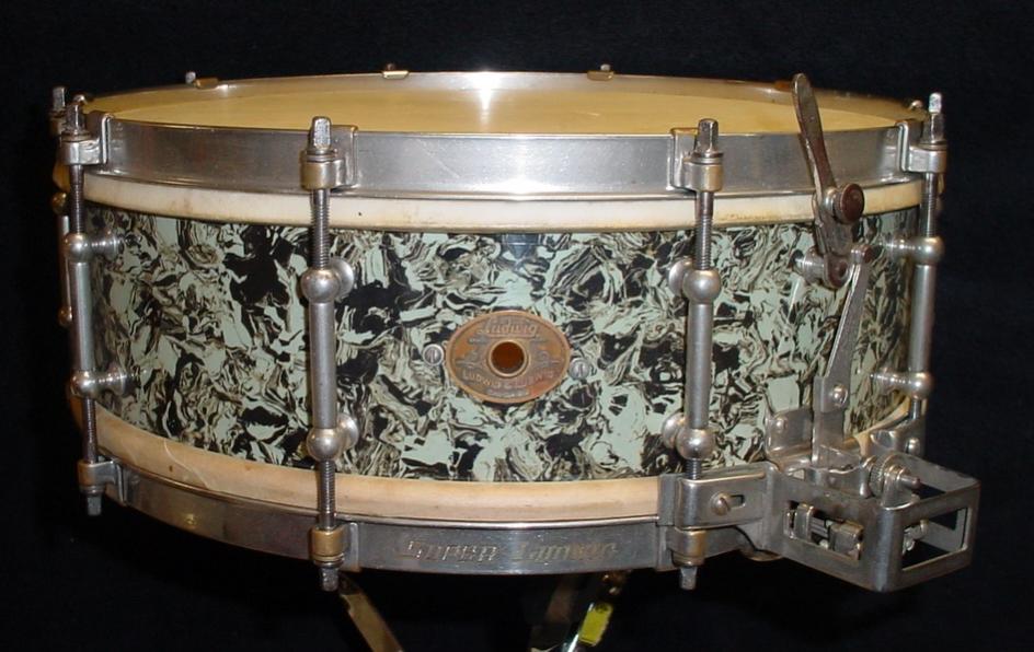 1928-29 LUDWIG & LUDWIG 5 x 14 MARBLE PEARL SUPER-LUDWIG MODEL