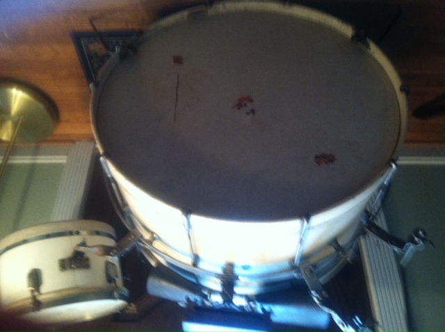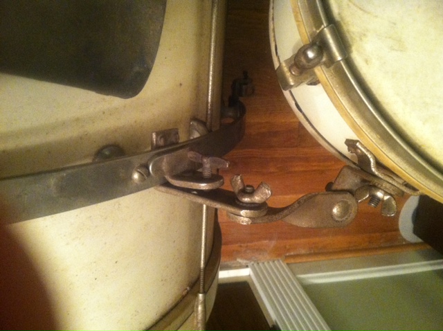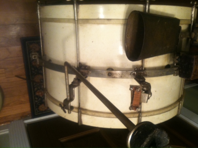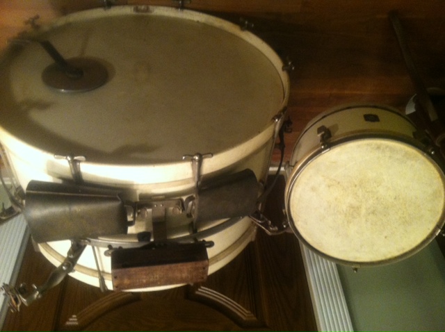 I have what I believe to be a Leedy Swingster partial drum set and it appears to be more complete than not. It is uncleaned. White lacquer finish should clean up nicely. 28" bass, 11" tom. I thought I would give folks here a chance to make an offer before I post on ebay where I assume someone from here would end up bidding. I will include an original 10" Leedy cymbal. I also have the original hi hat, pacemaker bass drum pedal and snare stand. I prefer to sell the kit as a whole with or without the hardware. Send a note if you need specific info or other pictures. If you have an offer, send via PM.