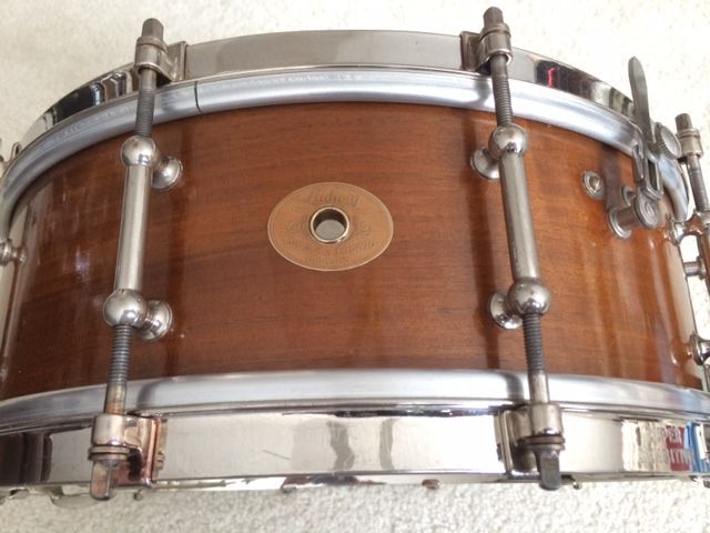 Another addition to the Ludwig snare collection. A 1930's Ludwig & Ludwig Super Sensitive with a beautiful mahogany shell. The drum came complete and I only found one non-original screw on a snare guard. The original hard case and calf heads were also included. To my knowledge, I'm the 3rd owner and the drum has spent much of its life packed away in storage. The drum only needed a light cleaning and some heads.