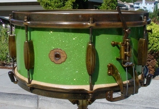 Nice drum and VERY nice job on the green wrap..Question tho...when the drum was new, was all the hardware a bright gold?If it was, you need to restore that if you can. This drum could be a stunning beauty once again!Great job!!