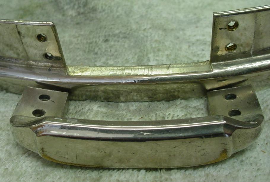 The nickel hardware was also in excellent-plus condition so a light cleaning was all that was needed except for the threads on the tension rods. Unlike some Slingerland Broadcasters and Radio Kings that I own and have seen, all of the hardware on this drum matches and is nickel plated. The snare gates on the bottom hoop are the early versions that were attached to the hoop with machine bolts. I always find it interesting that the early snare gates have stamped numbers or stamped letters called “manufacturers’ cartouches”; one side has a single stamped number or letter on the hoop and gate and the other side has two stamped numbers or letters on the hoop and gate. All the numbers or letters always match...but...the hoop and gates on this drum have no stamped numbers or stamped letters...blank on both sides. So this is either the phasing out of the “manufacturer’s cartouches” or an oversight.