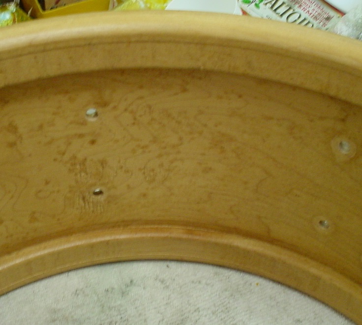 The BDP wrap is just about flawless so all that was needed was a little dusting. The solid birds eye maple shell interior is very clean. The cloud badge is clean with a tight grommet. A final artifact from yesteryear, a long gone Slingerland worker’s pencil mark “7 x 14”.