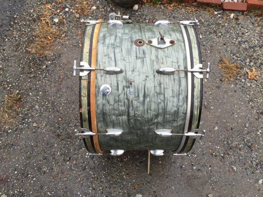beautiful drum in nice shape. all original gretsch parts and a hide batter head. seems this started out life as a lefty kick (see pic 5), rail was moved to correct right hand position. great drum with major potential!