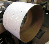 I really like the comment about how classic car collectors are. I've seen total resorations of cars that would blow you away...new paint, new chrome, new... you name it. Have you ever seen a 57 Chevy redone? Spectacular!. In my case, I truly had no choice, and in fact paid SMD for the effort alone (Willie Martinez is the man) to remove paint from paint; albeit unsuccessfully. Think about that challenge for a second. The point is, they advised me to try it because of the intrisic value of the original Copper Mist finish. At the end of the day, I'll have a genuine Gretsch 1953 Name Band kit with all 3ply shells, "Floor Show" size snare, all with gleaming wrap, original hardware and "That Great Gretsch Sound". Essentially, a piece of history. I've had this kit since I was a child, and it has the expected sentimental value. I'm very happy with my decision because I had proper guidance throughout the project. I'll post finished pics as soon as I can. In the meantime, here are work in progress pics, including the black painted mistake...please note, there was paint removed from the inside of the shells as well...I was crazy enough at 14 to paint the insides white and outsides black. This was no small project and once again, I can't speak highly enough of Steve Maxwell...personally and as well as his staff. He called me on the phone and e-mailed me many times to discuss this project and ultimately steered the ship. It was not inexpensive, but I agreed to all work up front. Thanks for everybody's banter. Love this forum, everyone is really helpful. This project is not lipstick and a girdle...its the real deal.