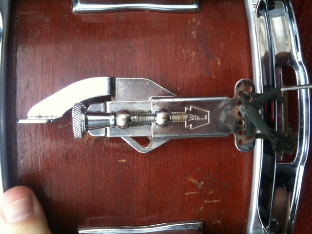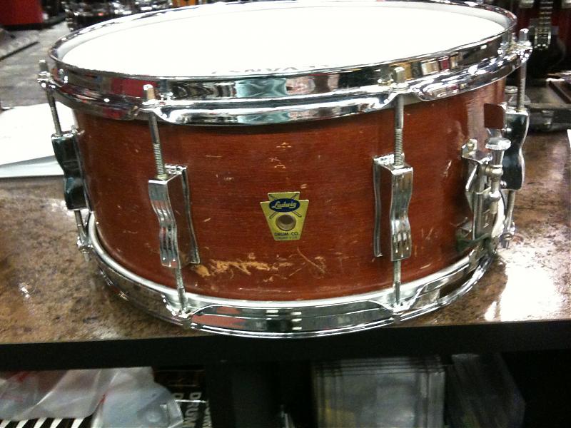 I've got a chance to purchase this drum from a friend of a friend. Not a real Ludy guy so I want to make sure my opinion is correct. From what I've seen in the catalog shots on VDG it's a 5.5x14 Jazz Festival. The date stamp inside the shell is June 8, 1959, but the ludy catalog didn't offer a 5.5" in '59, so I'm guessing this was built in '60. P83 throw, Mahogany finish & no extra holes...oh, and in amazing condition.