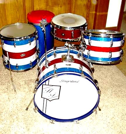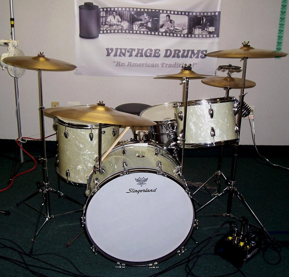 For your viewing pleasure, here is my 1959 Slingerland Gene Krupa Deluxe Ensemble 1N. It's all there! From the cowbell and woodblock with mount, to the McKinley BD muffler, AA pedal and Super Krupa snare drum. These Radio Kings just swing baby!