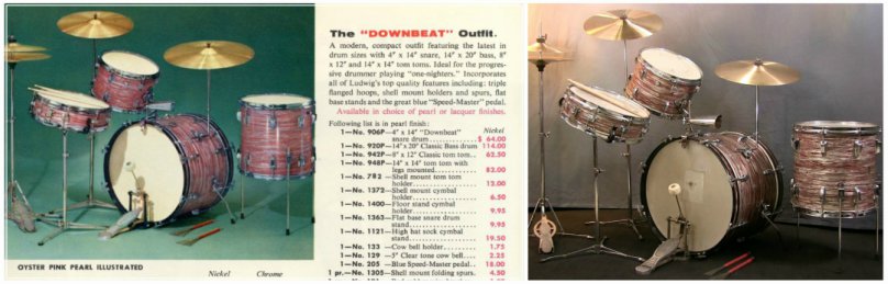 http://thedrumden.com/product-spotlight/1960-ludwig-oyster-pink-pearl-downbeat-drum-set/