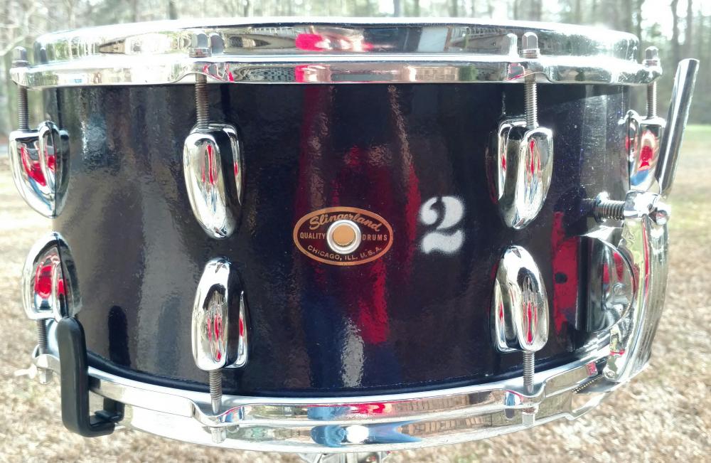 I bought this drum a couple months ago and am thinking of selling it. The holidays offered my first opportunity to clean, rehead, inspect and tune the drum up. It sounds fantastic! However, I originally planned to remove the "2" next to the badge. Upon closer inspection, it appears factory! Then, I noticed that the badge itself is not centered between the lugs! Never seen that either??? Perhaps noted as a factory 2nd?