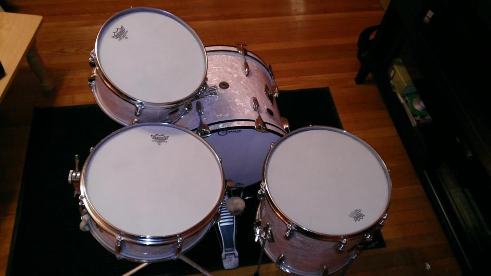 This kit is the best of both worlds. Looks brand new but has that 60's Jazz bop sound. Great players kit too. No worries about having match the wrap.