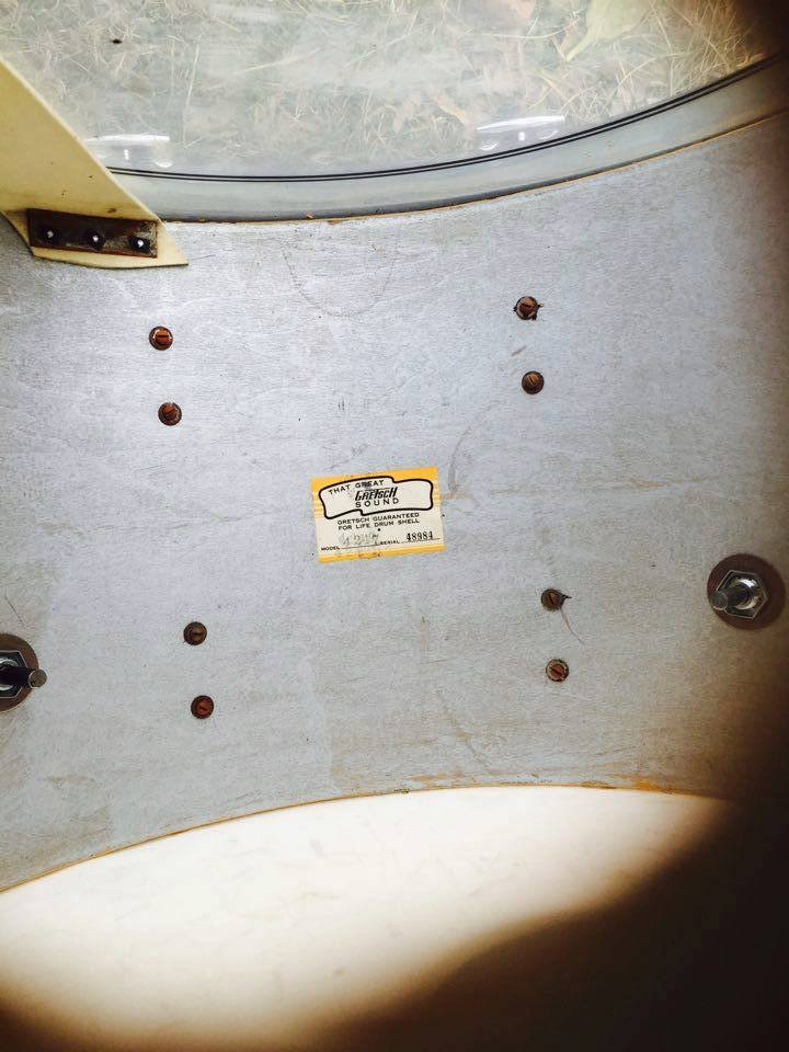 drum is in great shape, 100% complete with all original gretsch parts and no extra holes or mods. wrap is in good shape, just needs a cleaning, no doubt it would be vibrant and beautiful once cleaned. includes original Gretsch Cymbal L arm and external resonant side big muffler! cool stuff. i threw a Remo Powestroke 3 clear head on the batter side and this drum sounds MEAN! gnarly low end, focused well. it'll rival anything u put in its way. awesome piece.