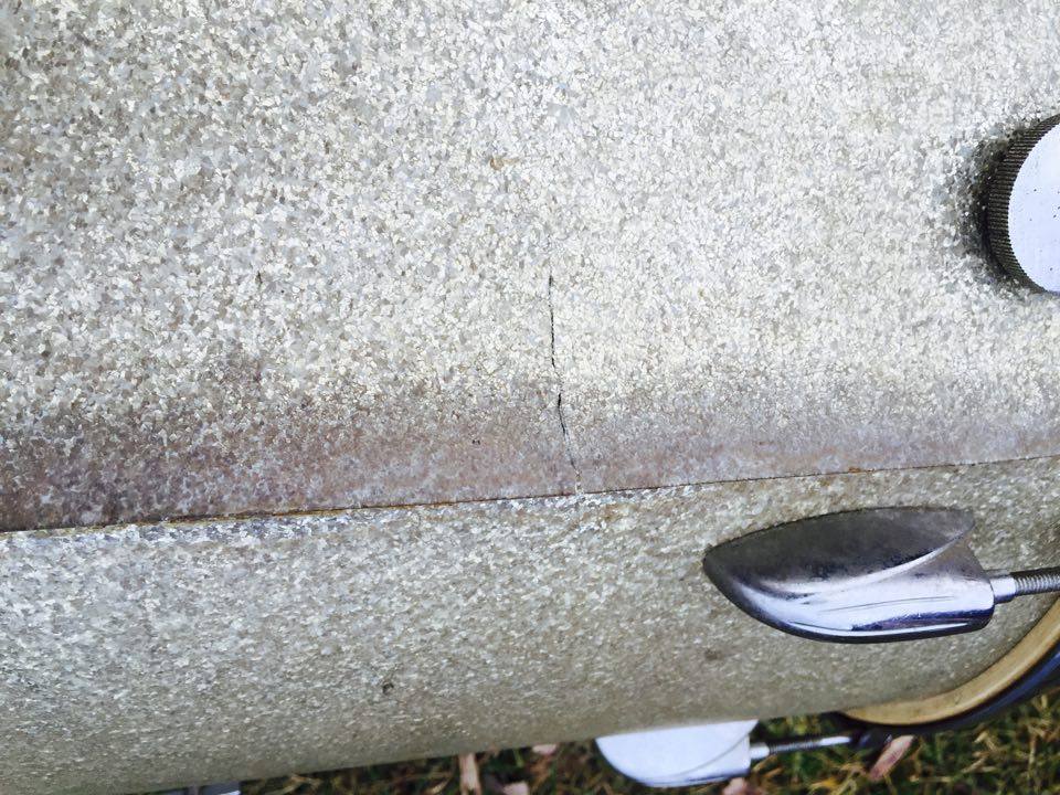 drum features no extra holes or mods and 100% original Gretsch parts, down to the floor tom legs and rubber tipped feet! chrome is really nice and clean and the drum is in nice shape over all. some seam lift (easy fix) and a small spit in the wrap on the seam (hard to even see it, took a close up pic). a great drum in nice shape that sounds awesome!