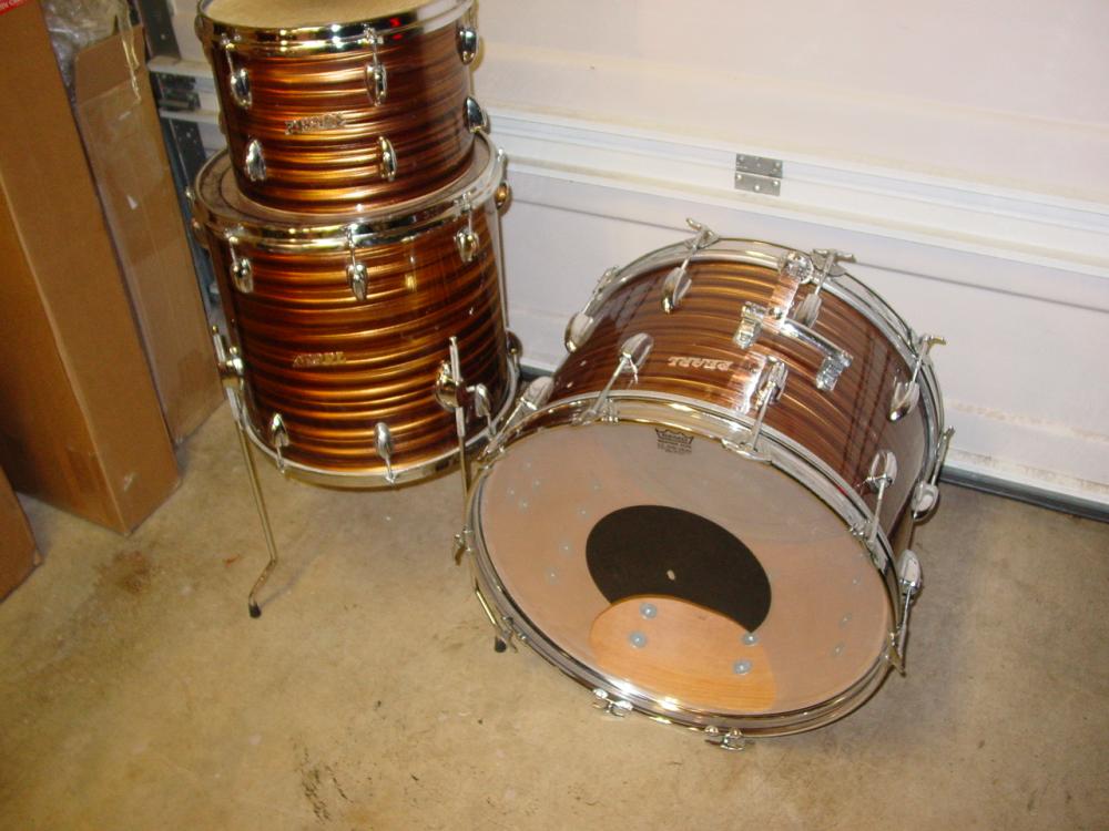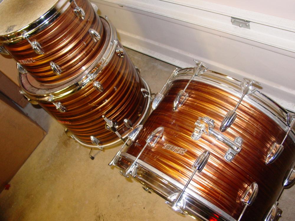 1960s Pearl 3 pc. Tigers Eye drum kit.