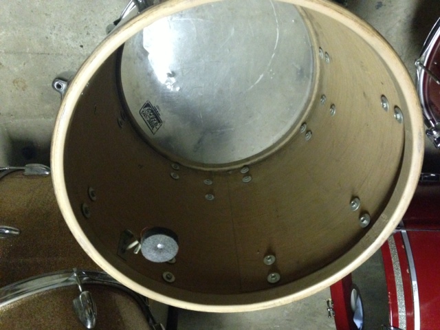 1960's Slingerland drums in champagne sparkle! kit is all original with no mods or extra holes, but is missing bass drum spurs. the champagne is gorgeous and the chrome is in nice shape! could definitely use a good cleaning, unfortunately ive just been too busy to do so. 12/13/20, great sizes, excellent sounding drums!