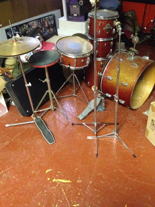 Got a red sparkle 5pc slingerland set im trying to sell for a friend. All original with original hh stand, kick pedal, snare stand and cymbal stands. Missing reso hoops n some t-rods on bd and toms. Asking $800.00 obo. If interested, pm me and lets talk. Got lots of photos and can get more if needed. Ill just add a few to give an idea of whats available. Sizes of drums are 12, 12, 16, 20 and 14sn.
