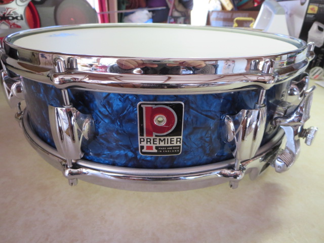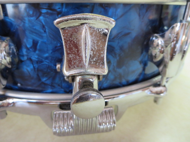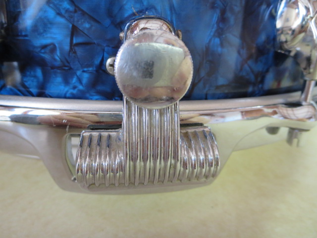The hoops are the late 60's Premier hoops..instead of the "beer barrel" eared originals...the reason being....the original hoops were quite pitted,and a drum this pretty needs nicer rims...and I happened to have a nice clean pair here....the difference in design is not all that noticeable at all...unless you know what to look for! That's how subtle it is...
