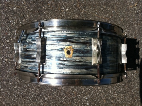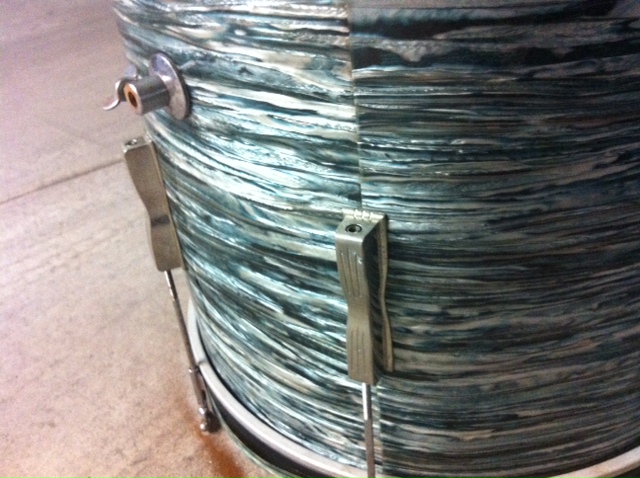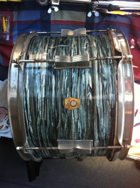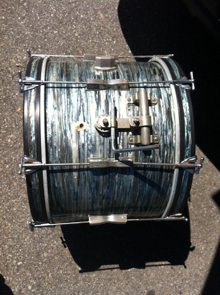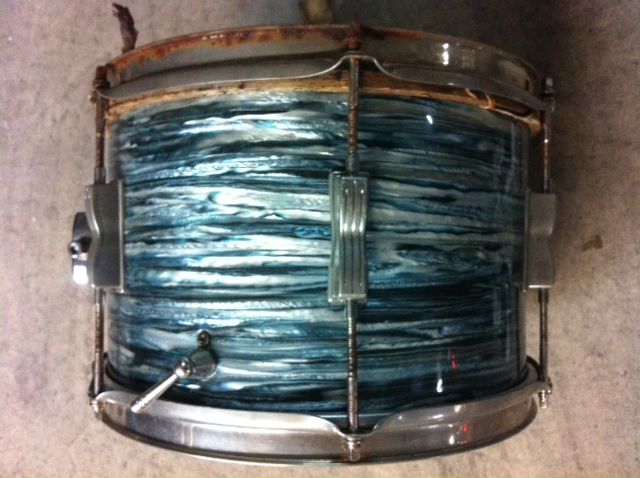 If anyone is interested and has specific instructions or would like me to leave it as is, please PM me or email at [email]adamcargin@gmail.com[/email] and make an offer. I will let it go at a reasonable price considering the rarity of finding a complete drum wrap in 60's Ludwig Blue Oyster, and if you need any nickel plated club date hardware please let me know. Id love to keep the parts together so that they can be reunited on a structurally sound shell. Badges will be included in the sale, as the grommets are holding them to the wrap and I see no reason to remove them. These drums are both in the 22x,xxx range (65) as is the snare drum that I will be restoring and playing.