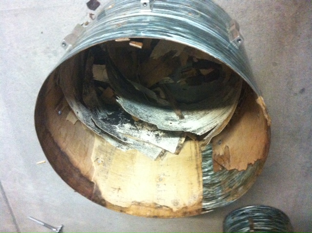 So I took both drums apart to see what I could do to save them. I soon realized when I stood the bass drum up without hoops (both still have their original inlay and seem to be in decent shape) the thing pancaked like a trixon egg shaped bass drum! No structural integrity what-so-ever! There was nothing to do but to strap on a dust mask and gloves, take the hardware off, and see if I couldn't separate this beautiful wrap from the zombie shell in an effort to help someone who needs some sweet blue oyster to finish a club date kit!