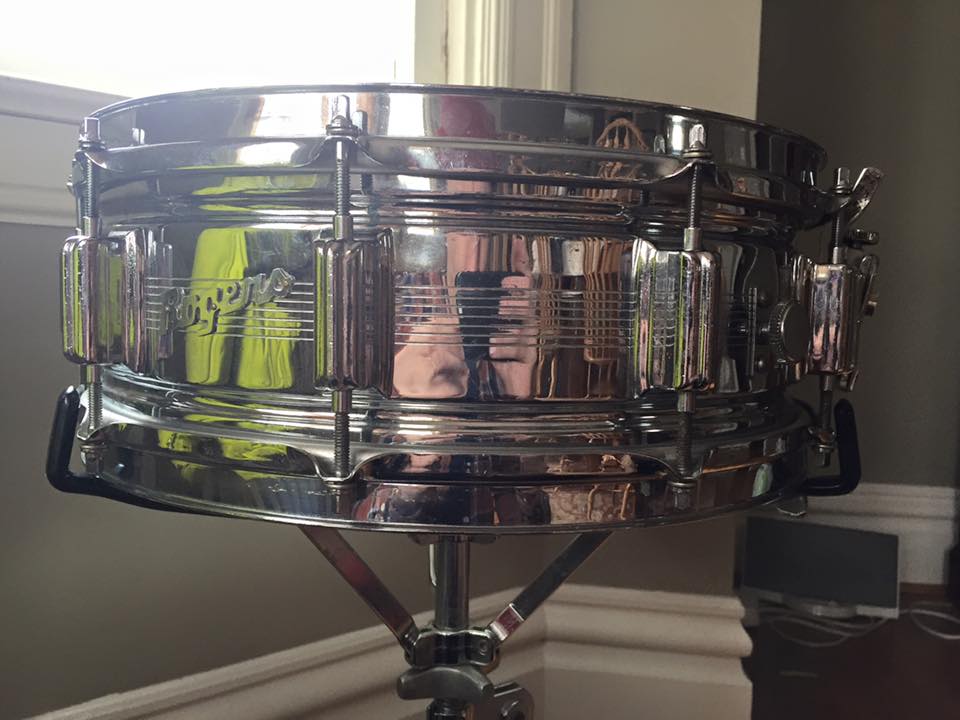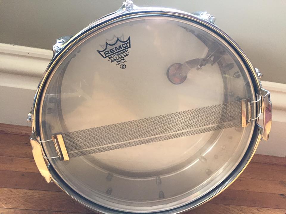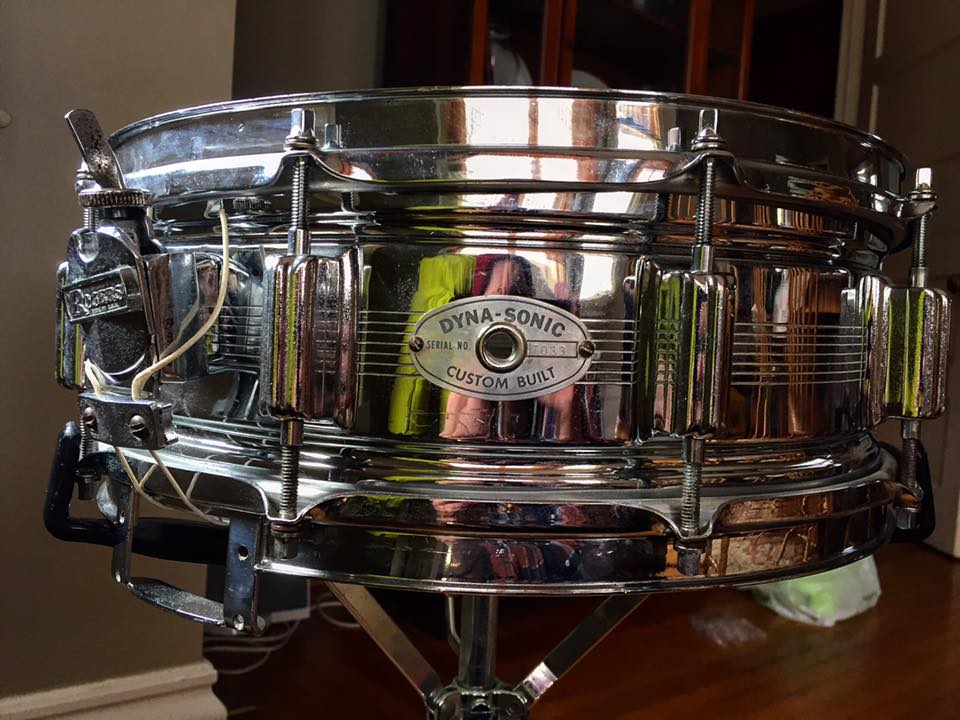 Up for sale is a 1966, 7-line Rogers Dynasonic. These drums are absolutely killer -- and the 60s versions are a bit harder to come by. This one is missing the bridge assembly.
