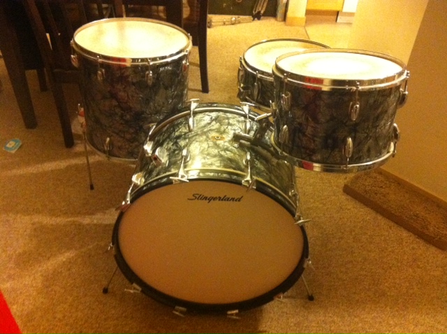 Cleaned up the 13/16/snare tonight. They look awesome and sound even better. New G2 Coated batter heads make these drums sing. The bass drum won't need any head attention...it already sounds killer with the original heads and one felt strip on the batter side!