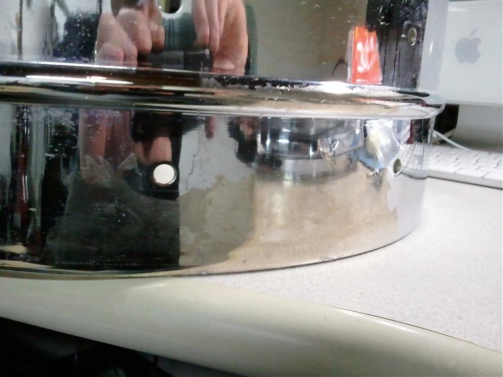 There is minor pitting on the shell, but there are some parts that have flaked chrome that reveal a shiny copper color. It is only happening between two lugs at the 5 to 6 o'clock position in relation to the snare bed. Is this the copper plating stage of the chrome plating process?