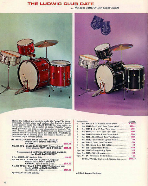 When I first saw it, I knew it was a good find! All the parts were there down to the factory bags for the drum key and hex wrench. The Black Laquer finish is excellent for all three shells, badges tight and right and in sequence with the January 1967 date stamps. Even the Acrolite was in sequence with the kit! All original heads are there too. Check out the catalog pic showing the same kit as offered!