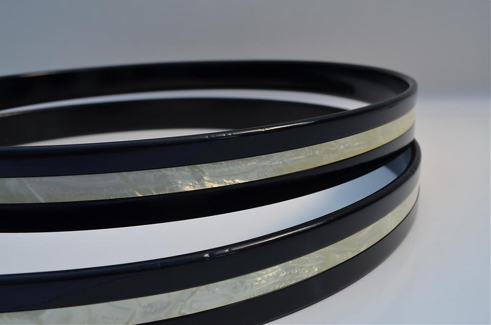 I'd also like to replace the bass drum hoops. I'd like to get some that are not quite as wide. They do have a 1/2 inch inlay of Champagne sparkle...which I understand is NLA.