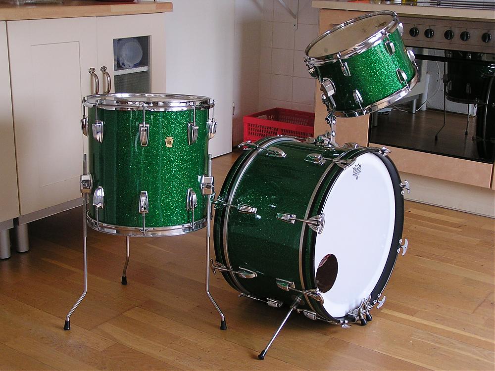 And had to fix a couple of drilled holes in the floor tom where some nut probably mounted a cowbell. Cowbells are for cows in switzerland, not on Ludwig Jazzette's!