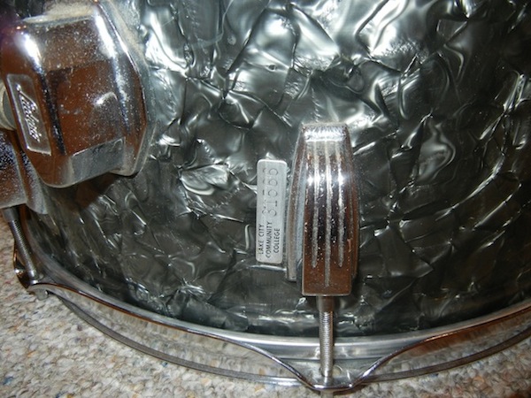 This drum is in ok shape with some minor problems. The seam is lifting a little and there is a small badge that was put on by the original college that owned this drum. It says "Lake City Community College" and is right next to one of the bottom lugs (please refer to picture). There is a little bit of very minor pitting on some of the chrome and the floor tom legs are missing. The drum has a clear interior and the wrap aside from the seam appears to be in great shape. Please feel free to ask any questions and make a reasonable offer! Thanks!