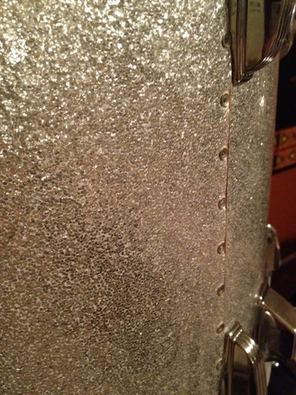 I'm selling my virgin Ludwig 22x14 Silver Sparkle Bass drum. It's in great shape, and the wrap looks amazing. Since this was made during the time when they used rivets at the wrap seem, theres no lifting or bubbling. Seriously though, this thing is clean.