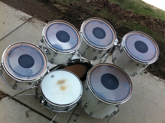100% original drums except bass and snare heads. Bass drum has clear Evans EMAD on batter side and Remo Pinstripe on the front. Snare drum has REMO Coated Emperor on top and snare side Ambassador on the bottom. All drums including snare are in the serial #299xxx to #300xxx range.