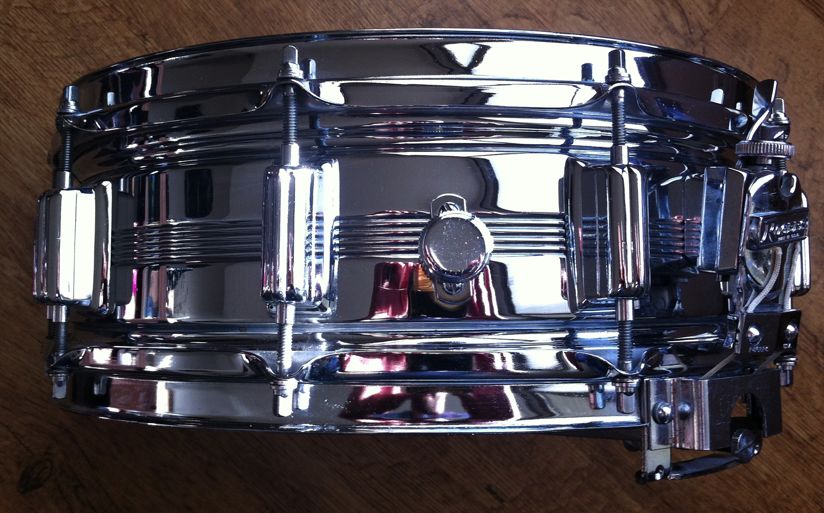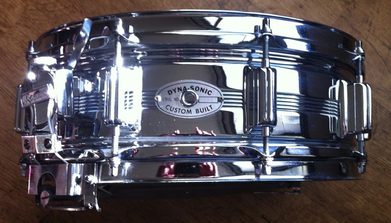 For sale is a COB 1971 Fullerton Dynasonic Snare. The drum is all original and and in excellent condition, even the little grey rubber pieces on the snare frame are in excellent condition. The serial # is 26387 which puts it as an early 71 or late 70. Script badge. D strainer. Out of the interest of full disclosure there is a couple tiny scratches near the throw off, but too small to be seen in the
