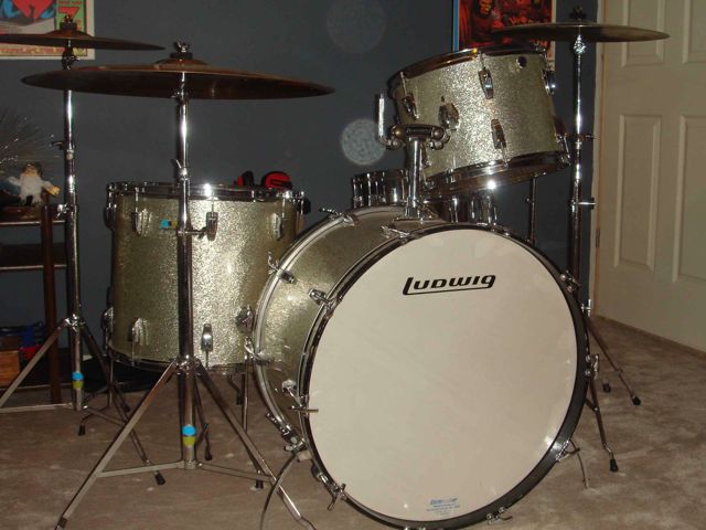 This is my all original 1971 silver sparkle LUDWIG kit......sizes 24,18,14, with a matching 6.5x14 Supraphonic snare. All hardware are matching ATLAS stands of the same year, right down to the kick pedal and throne. The kit is in absolutely immaculate condition.:D
