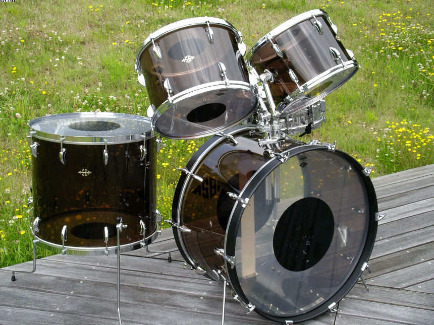 Tom toms 13x9 and 14x10, Floor tom 18x15, Bass drum 24x14