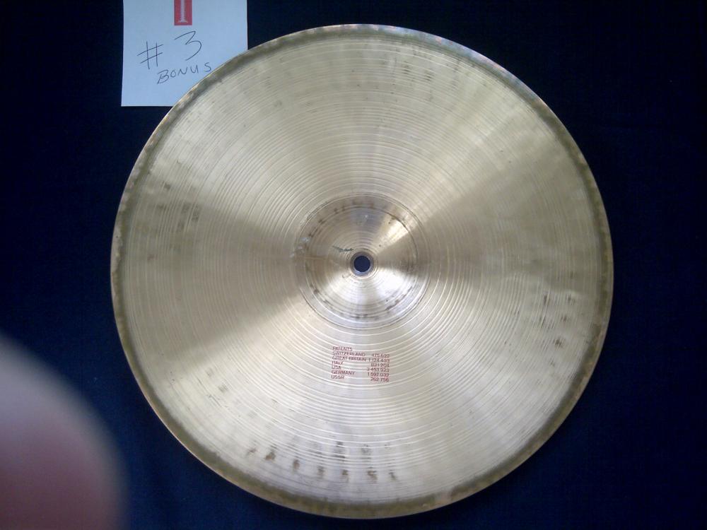 BUT WAIT! That's not all I am offering here - I am throwing in, as a bonus a 1981 Paiste 2002 Sound Edge Top. Also 14inch, this one used to have a dent in it too - but again, I popped it out and indeed I can not even tell where it was (and I forgot). As you can see and hear - no ill effect and it sounds great.