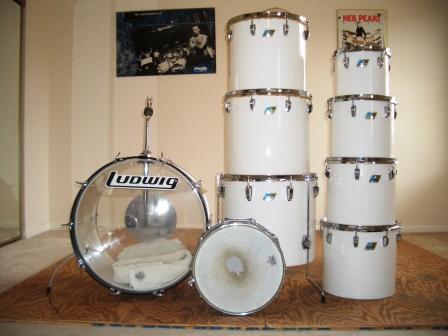 I’ve had a Ludwig drum set for years that I bought used around 1986. It’s a combo set with some older white acrylic drums (s/n range 1660xxx) and an additional Bass and two wing toms (s/n 3060xxx). I don’t know if the older pieces are Vistalites as I’ve never seen a set like it on any website…solid white, deep shells, concert toms. 3 newer pieces have wood shells. All have Blue and Olive badges circa late 70's. All had Ludwig Rockers silver dot heads when I bought them. Does anyone have any idea what I have here? Thanks for any help or insight you may be able to provide!