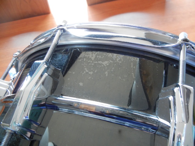 Overall, the drum is in great shape with only here and there some minor discoloring in the black finish. (see pic 3) The strainer mechanisms have a few non original screws on them but I'm not to bothered by that.