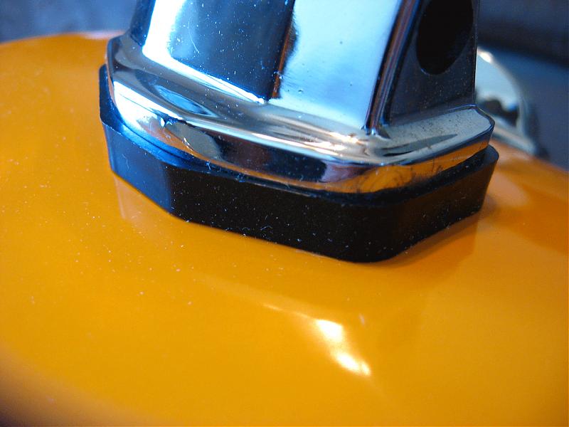 The one I am not sure about is the extension under the leg mounts. I am calling it an extension, because I am not sure what it is called. Some might call it a gromet, but it is shaped like the back side of the leg mount, made of rubber and aproximately 1/2" thick. It makes the mount stand away from the shell and allows the leg to pass the rim. I am assuming this was done to avoid scratching the side of the rim.