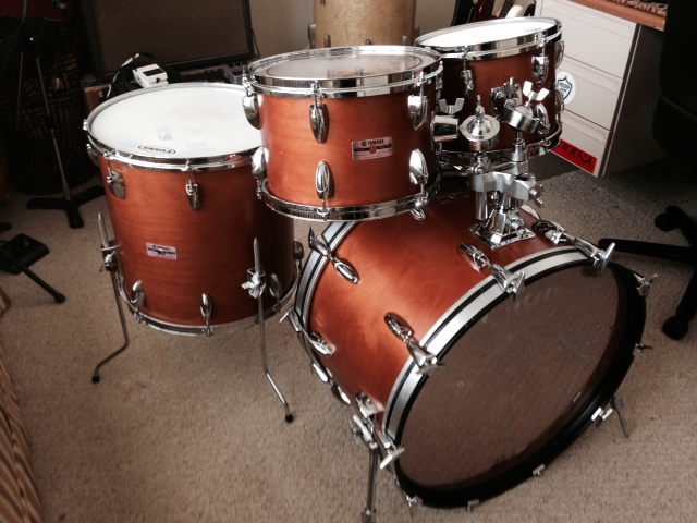 I believe I picked up a 1983 Yamaha Tour series drum set (birch/mahogany combo shells). As far as my research has shown, the finish is "natural wood". The drums are double badged and all say MADE IN JAPAN on the badges (not made in taiwan like I have seen on some of these kits).