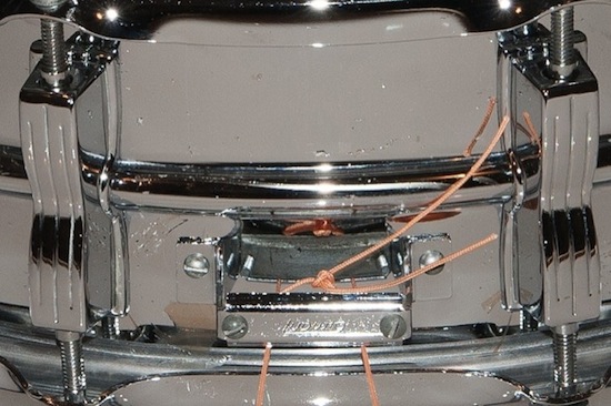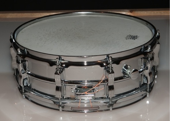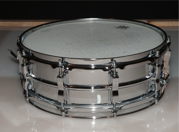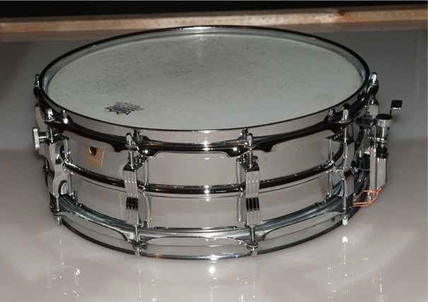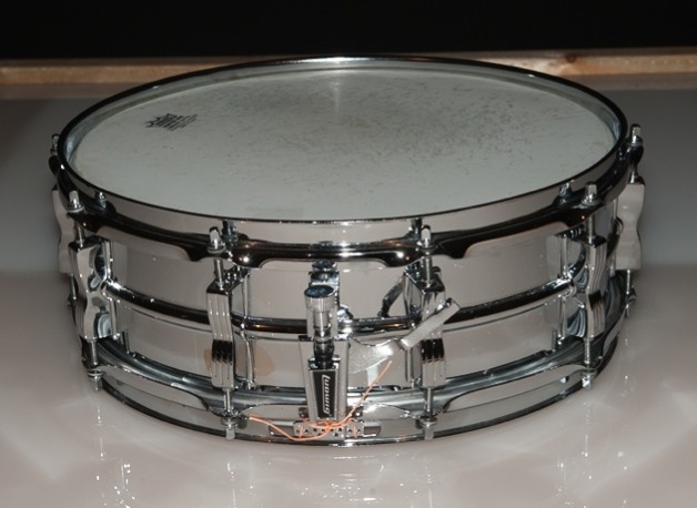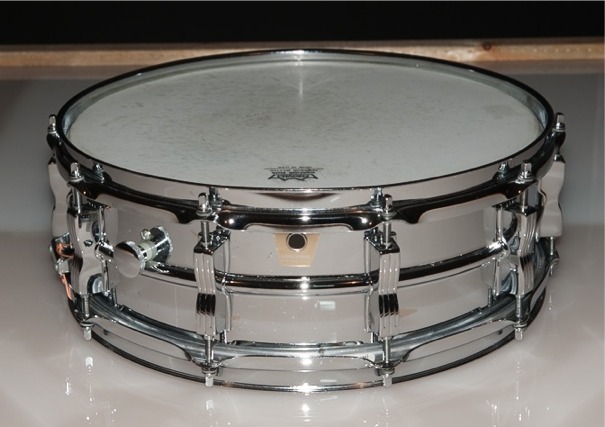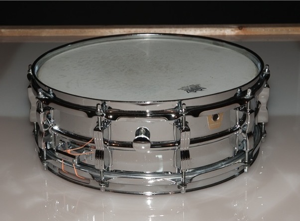 I've got something for a Ludwig collector or anyone looking for a great SupraPhonic: a Ludwig SupraPhonic, vintage 1984. One of the very last out of the Chicago factory, transition badge with no serial number (they'd already shipped the number machine to Monroe, NC). Plus...it's one of the rarer ones that came out of the factory with bowtie lugs instead of Imperial lugs. Size is 5x14. Some flaking of chrome (as usual) so it's not perfect but very shiny overall and has been in a humidity controlled environment. Rims and hoops are in very nice condition as are the lugs and sounds superb. I've even kept silica gel packets in the case with it to absorb humidity and the flaking has never gotten worse. Comes with a Kaces III case and PureSound snare wires. I'll let it go for $225 including shipping. If you're interested, PM me. I'd rather sell it here than on eBay and will use the money to find another Ludwig for the collection. Not looking to get rich, just selling for someone who wants a great snare for for recording or playing.