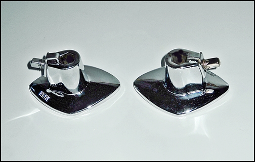 Rare MIJ parts brought home from a weekend road trip - These are two matching new old stock Apollo shell mount tom holder receiver castings. Never mounted or used - designed for the hex rod tom holders. One of them has slightly more storage marks than the other, but both look brand new for all practical intent. The mounting spacing is 5 cm. and the mounting screws are included. They're quite "hefty" with thick chrome and each has the word "JAPAN" on the side. Sorry no shipping outside the U.S.A. PM me if interested and I'll quote you a most reasonable price. Thanks for looking!