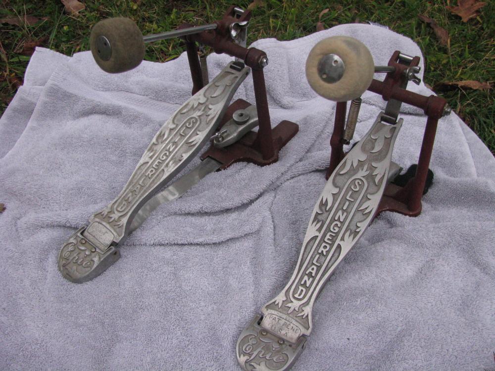 Take your pick or take both. 2 Slingerland Red Epics. One has visible Pat Pending stamp-- and the other either worn away or never there?? One shown on right in pics a touch sharper than the other-- but both nice, all there and functional. One for $75 shipped/lower 48-- both for $125. or best offer. Central Jersey Shore.