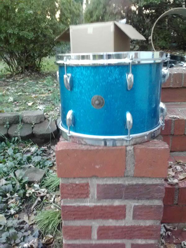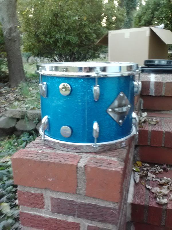 I have 2 Vintage Gretsch Round Badge 9''x13'' blue sparkle toms, for sale separately or together.