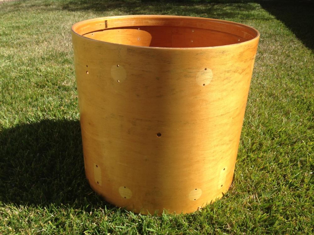 Just listed on Ebay but will cut a deal for a forum member. PM me if interested. Jasper shell, no extra holes, hoops included but nothing else. Original edges. 18" x 20", drilled for 8 lugs top and bottom and 4 floor tom brackets.